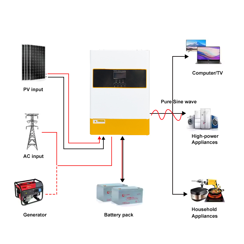 | Type d'onduleur | Onduleur solaire hybride | Type de sortie | Onde sinusoïdale unique et pure |